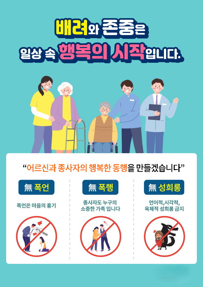 | 제목 | 2026. 어르신 및 보호자 폭언.폭행.성희롱,상호존중 예방 포스터 안내 | 공지일 | 2025.12.22 |